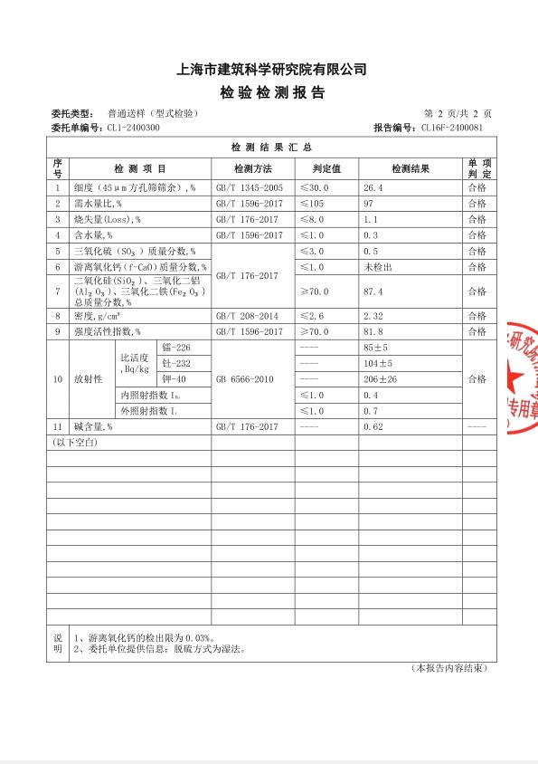 原材料炉渣检测报告